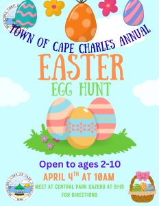 The Town’s Easter Egg Hunt is April 4 at 10 AM. Participants (ages 2-10) can meet at the gazebo in Central Park for instruction.