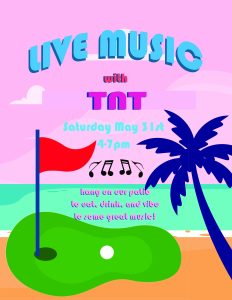 Come hang on our patio to enjoy good vibes with TNT. No need to play mini golf – grab some food or drink and relax.