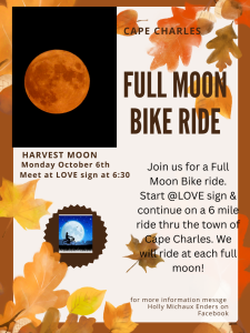 Meet at the LOVE Sign for a bike ride under the harvest moon. Participants will begin the ride at the LOVE Sign and continue on a 6-mile ride through town.