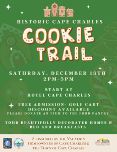 This holiday season—indulge in Cape Charles’ Historic Cookie Trail! Wander through exquisitely preserved historic homes and pick up a cookie or two (or three or four!) along the way.