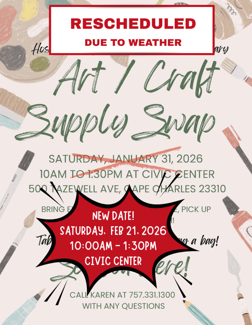 Where Mystery Meets Music—and Art Finds Its Future Live Music ~ Fancy Masks ~ Serious Fun for a Great Cause Join us for an enchanting Masquerade Ball on Saturday, February 7 at 6pm benefiting our nonprofit arts organization, Arts Enter Cape Charles. Enjoy live music by the Harbor String Quartet, an elegant atmosphere, light fare […]