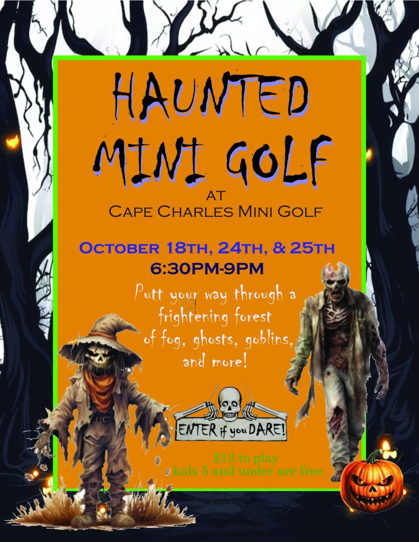 Cape Charles Mini Golf 2100 Stone Rd., Cape Charles, VA, United StatesCome putt your way through a frightening forest of fog, ghosts, goblins, and more!
