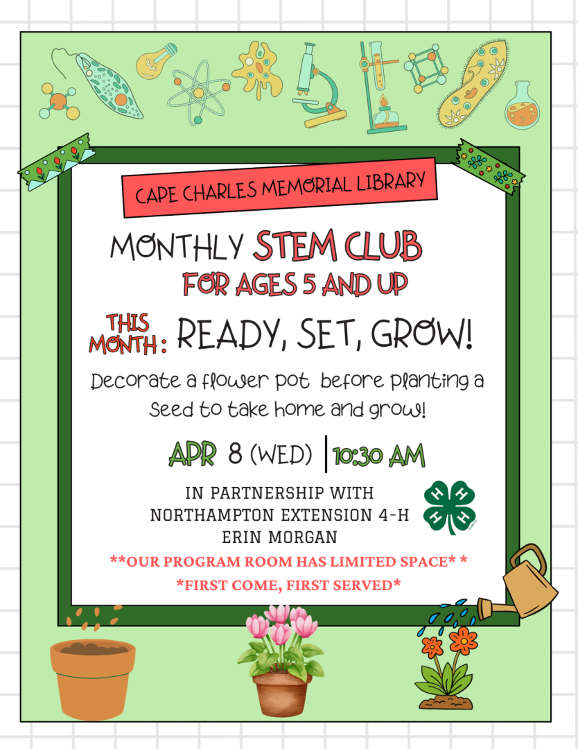 Decorate a flower pot. Plant a seed to take home and grow! In partnership with Northampton 4H.
