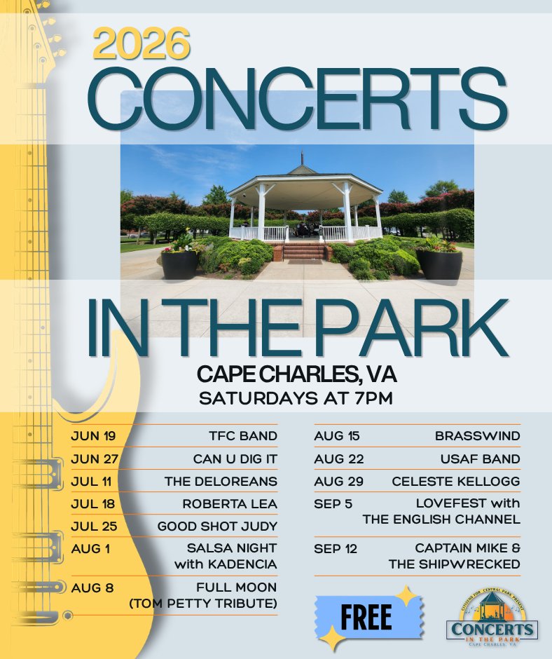 Cape Charles Central ParkSummer is calling... and it sounds like Cape Charles! The Citizens for Central Park host FREE concerts every Saturday night through the summer in Central Park! From soulful serenades to […]