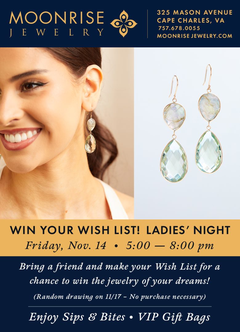 Join Moonrise Jewelry for some holiday cheer with Cape Charles Distillery and a Diamond Trunk Show by Madison Jewelers. For 2 days only, save 10% OFF all diamond jewelry during […] |