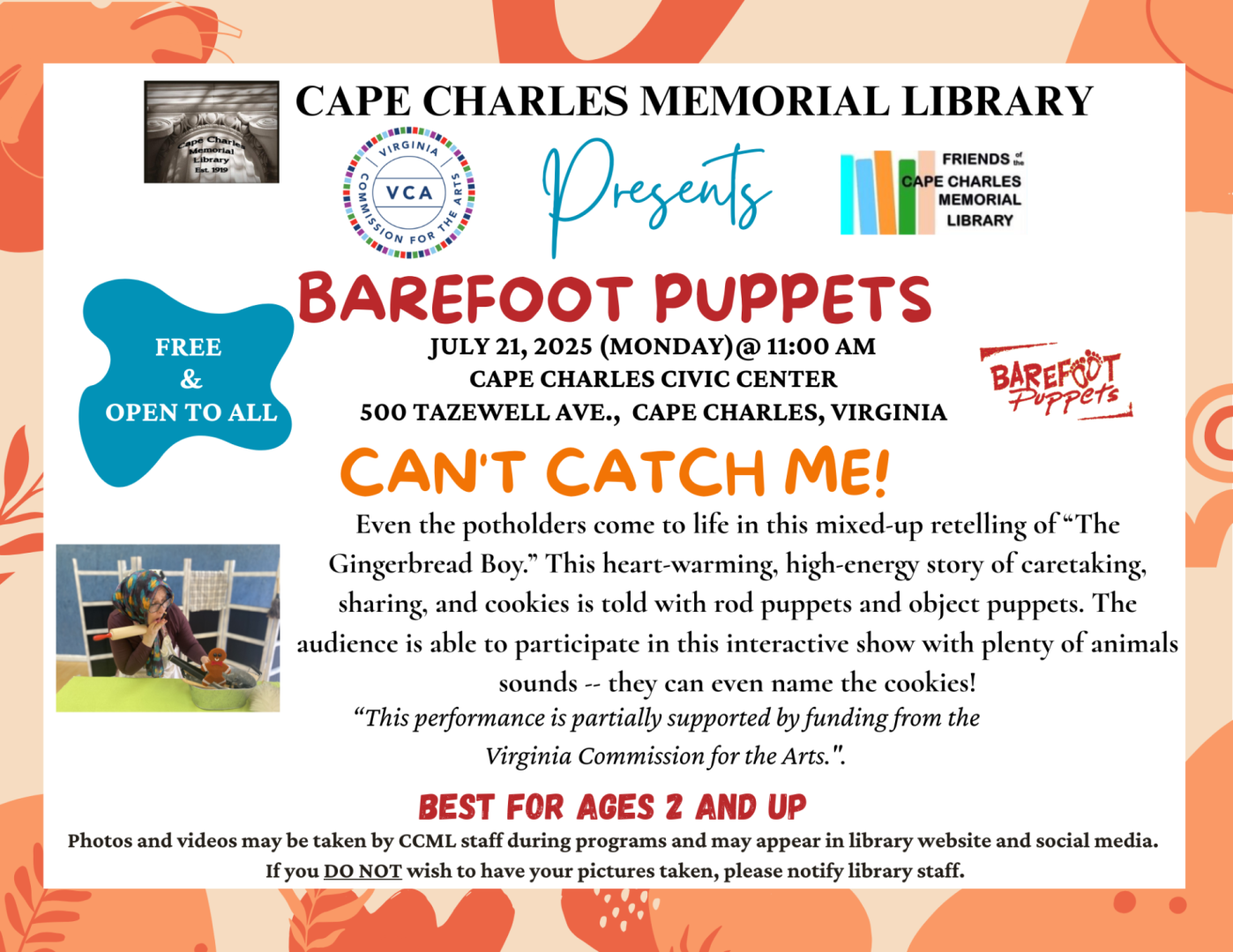 Cape Charles Civic Center 500 Tazewell Avenue, Cape Charles, VA, United StatesCome see the retelling of "The Gingerbread Boy". Children are able to participate in this interactive show with plenty of animals sounds -- they can even name the cookies! Best […]